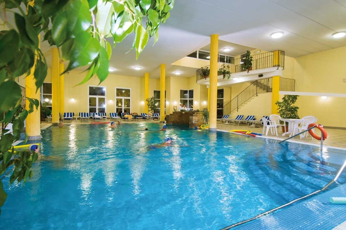 Le due piscine termali coperta e scoperta comunicanti circondate da un ampio parco, Vi permetteranno di trascorrere ore di autentico relax. Potrete utilizzare anche la sauna, la tipica grotta termale, la doccia Kneipp e la palestra. L'ampio e splendido spazio verde in cui esse sono immerse, le palme e la vegetazione da cui sono circondate ne fanno una vera e propria oasi di pace, dove potrete prenderVi cura del Vostro benessere fisico tra giochi d'acqua e idromassaggi alternate a divertenti lezioni di acquagym.