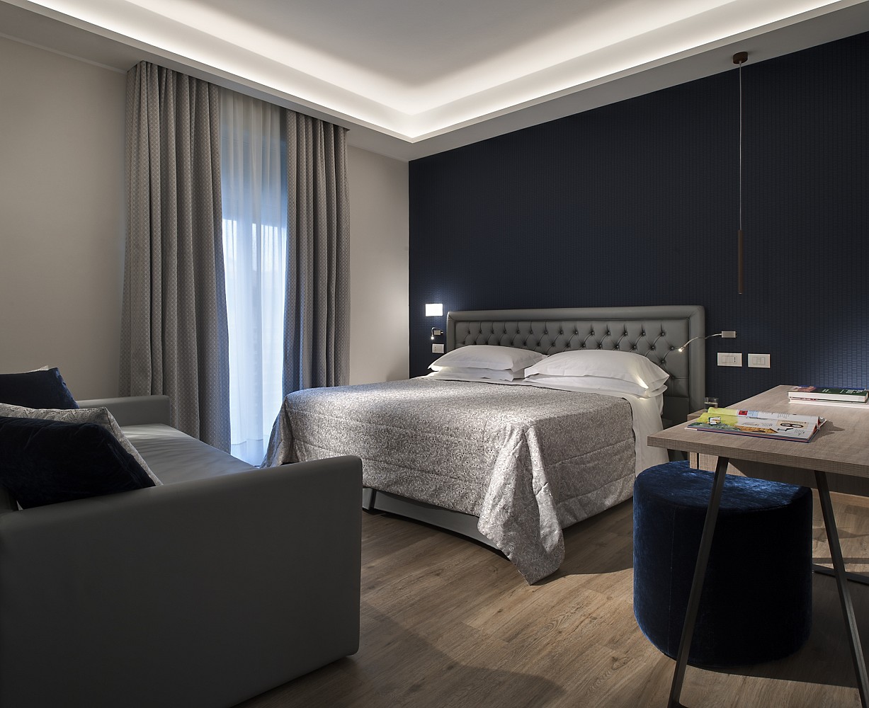 Le stanze sono particolarmente confortevoli, tutte con bagno (doccia o vasca), balcone, telefono diretto, tv a schermo piatto con canali satellitari italiani e stranieri, asciugacapelli, cassaforte, aria condizionata e minibar (rifornito su richiesta dl cliente).