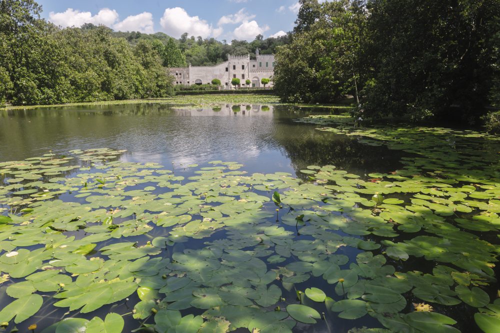 Il Castello del Catajo a Battaglia Terme si presenta maestoso, con un lungo viale d’ingresso che conduce al Cortile dei Giganti. Questo spazio fu utilizzato dalla famiglia Obizzi per rappresentazioni teatrali, tornei e naumachie (rievocazioni di battaglie navali), dato che la parte inferiore del cortile poteva essere riempita d’acqua. Tra le diverse fontane della villa la più spettacolare è la Fontana dell’Elefante, posta dentro una grotta scavata nella roccia abbellita dalla scultura raffigurante l’animale, opera emblematica dei gusti esotici degli antichi proprietari. Una scalinata, costruita in modo da poter essere salita anche a cavallo, permette di accedere al piano nobile e alla sale di rappresentanza, dove è possibile ammirare l’albero genealogico della famiglia Obizzi, affrescato su una parete. Il Castello comprende ben 350 stanze, alcune delle quali ospitano gli affreschi dello Zelotti. All’inizio erano previste pitture solo nei muri esterni del castello (ora scomparse). Dalla grande terrazza panoramica si possono ammirare i vasti giardini a sud, allestiti nel ‘600 da Pio Enea II, caratterizzati da due magnolie risalenti al XVIII secolo e da una gigantesca sequoia americana (tra le prime piante importate in Europa dall’America), oltre che da peschiere, pergolati e labirinti di bosso. Una parte del parco si snoda sulle pendici di un piccolo colle ed era un tempo riserva di caccia dei proprietari, da cui il nome Parco dei Daini.