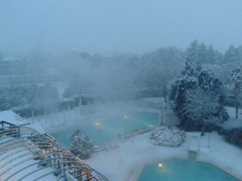 Die Schwimmbäder sind sowhol draußen und drinnen, sie enthalten verschieden temperiertes Thermalwasser und sie sind mit Unterwassermassagevorrichtungen, Kneippanlage und Nacken-Wasserfälle ausgestattet.