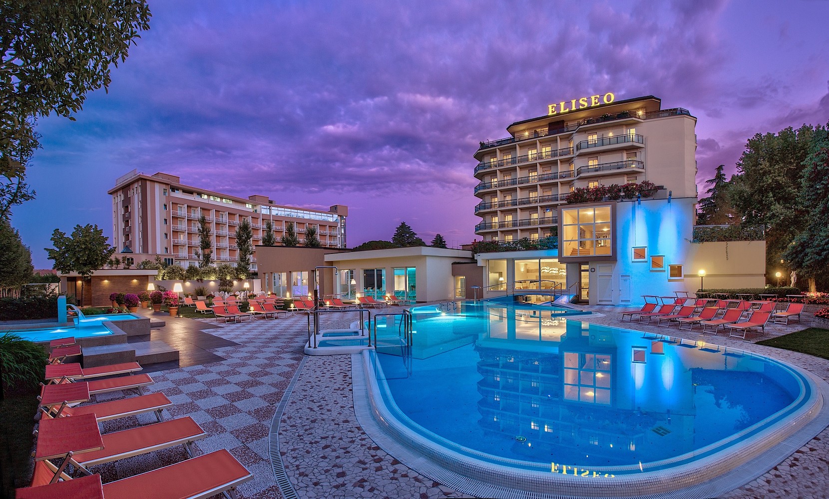 Au Coeur des Thermes Euganéennes a Montegrotto - Abano Terme, sur les flancs des splendides Collines Euganéennes, où les bénéfices des eaux thermales sont connus depuis l’antiquité, l'Hôtel Eliseo unit la tradition des vertus thérapeutiques des cures thermales à un moderne centre de bien-être pour des vacances régénérantes où vous retrouverez la forme, l’équilibre et la sérénité. Nous vous attendons...