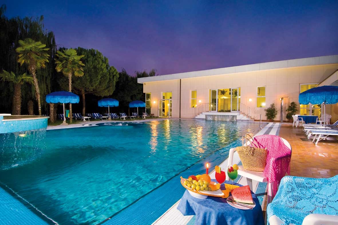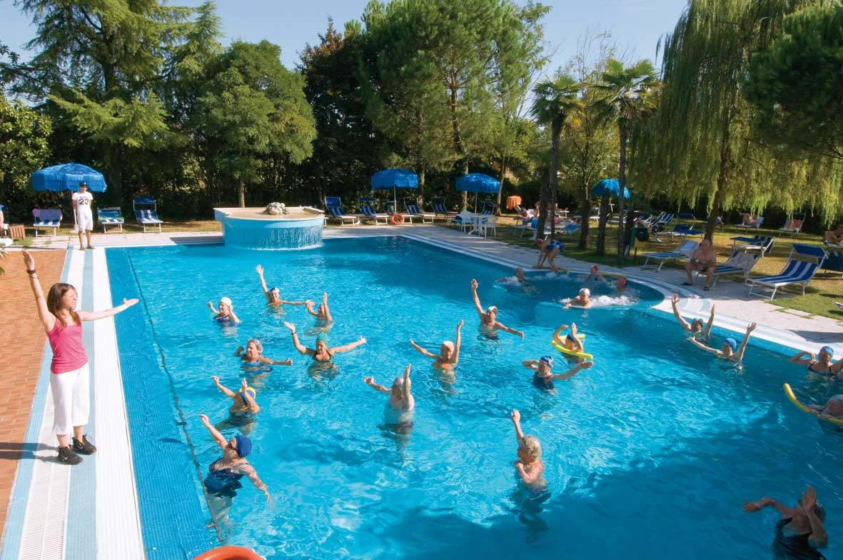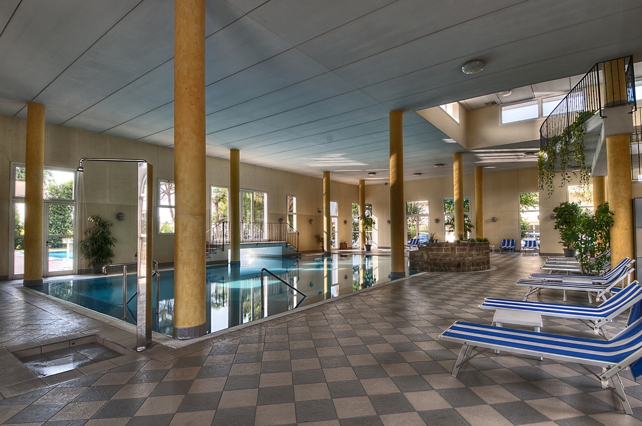 Le due piscine termali coperta e scoperta comunicanti circondate da un ampio parco, Vi permetteranno di trascorrere ore di autentico relax. Potrete utilizzare anche la sauna, la tipica grotta termale, la doccia Kneipp e la palestra. L'ampio e splendido spazio verde in cui esse sono immerse, le palme e la vegetazione da cui sono circondate ne fanno una vera e propria oasi di pace, dove potrete prenderVi cura del Vostro benessere fisico tra giochi d'acqua e idromassaggi alternate a divertenti lezioni di acquagym.