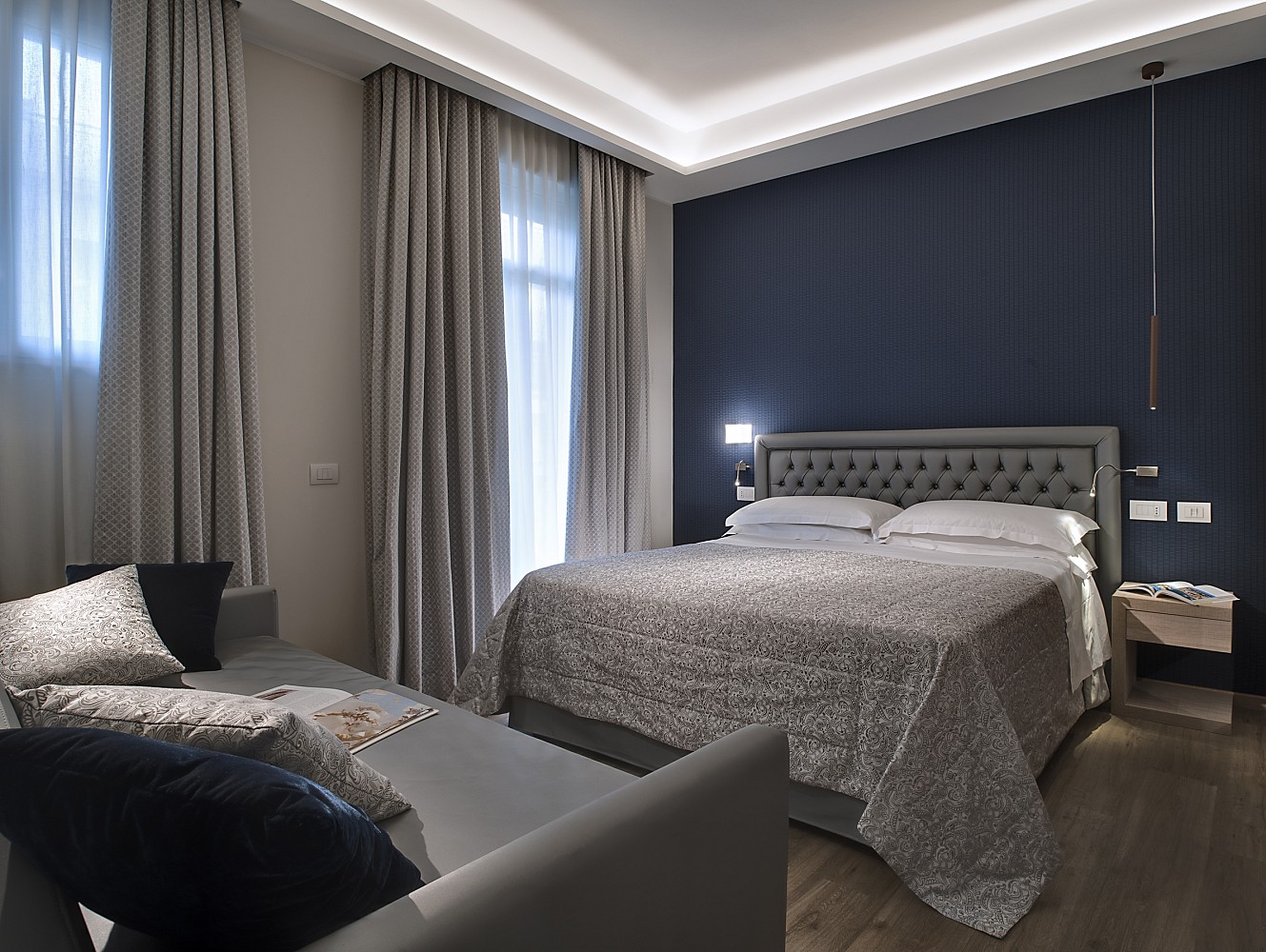Le stanze sono particolarmente confortevoli, tutte con bagno (doccia o vasca), balcone, telefono diretto, tv a schermo piatto con canali satellitari italiani e stranieri, asciugacapelli, cassaforte, aria condizionata e minibar (rifornito su richiesta dl cliente).
