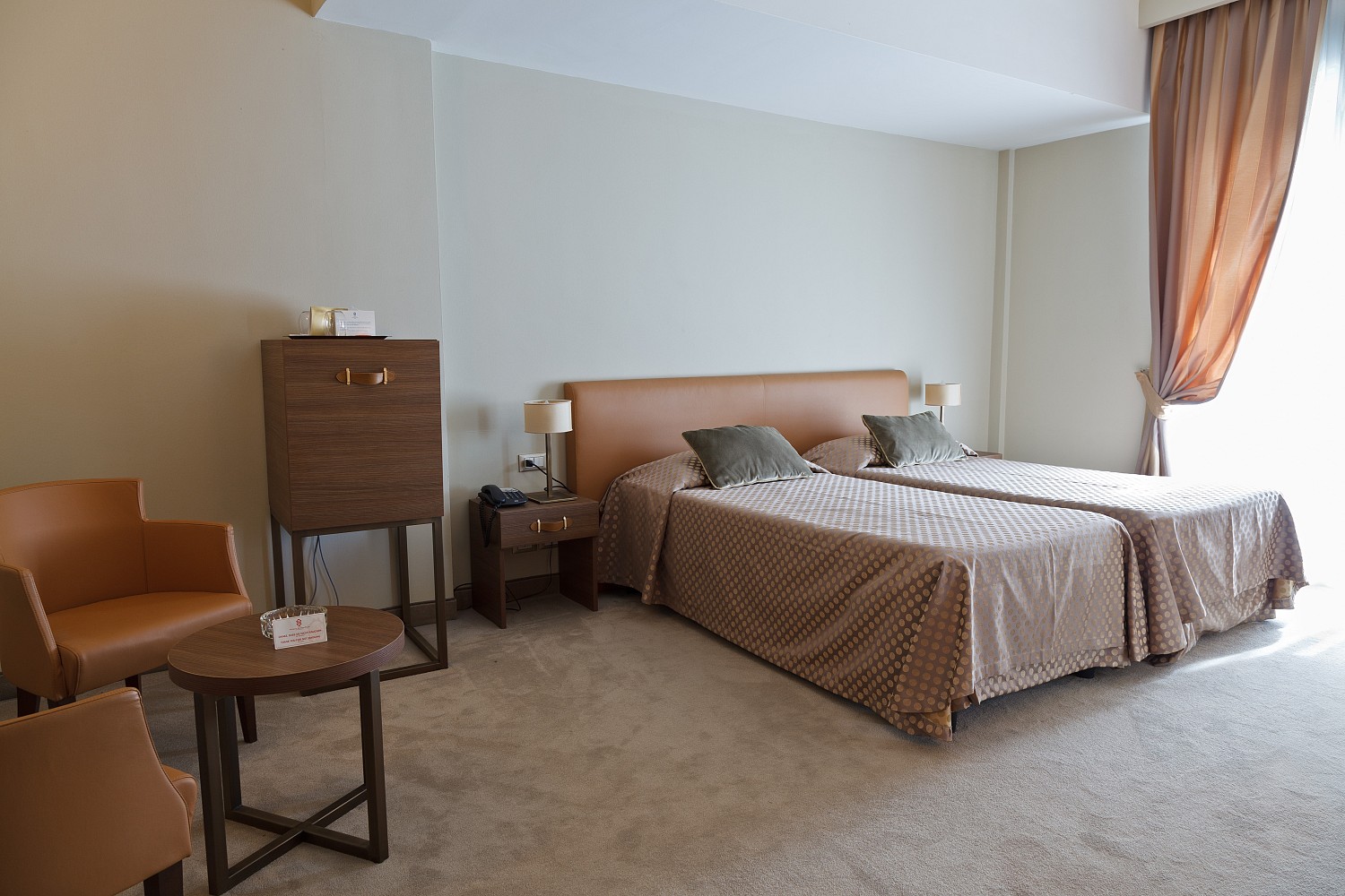 The hotel is situated in a splendid park of 12,000 square metres and has comfortable, elegant lounges, a welcoming dining hall and a well-stocked bar - all with air-conditioning. Ample parking is also available. Each of the 170 guest-rooms is tastefully appointed with en-suite bath/shower and wc, balcony, TV, telephone, minibar, and air-conditioning. For those demanding the highest standards, elegant suites and junior suites are also available. Four thermal pools - one covered and each maintained at a different temperature - are ideal for swimming and relaxing; as are the sun-terraces, spacious lawns, tennis courts and boccia lane. In the large, bright dining-room, meals are served from a choice of three different menus and breakfast taken from an extensive buffet. In the summer breakfast can be enjoyed on the restaurant terrace.