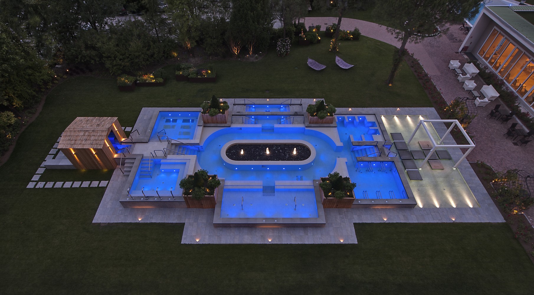 Пять термальных бассейнов с различной температурой (более 1000 м2 поверхности воды) могут удовлетворить любые потребности: развлечение, спорт, релакс, лечение, послетравматическое восстановление работоспособности.