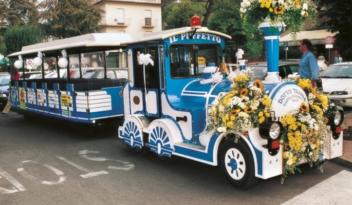 Von April bis Oktober führt Sie der sympathische Schlumpfzug (Il Puffetto) durch Abano und Montegrotto spazieren. Read More