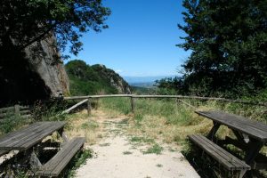 Il punto di arrivo si trova nei pressi di un’area di sosta, dotata di panchine e tavoli.
