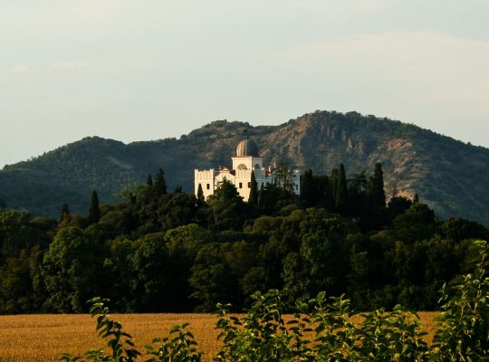 Oltrepassato lo stabilimento termale “La Contea”, svoltate a sinistra per poi rientrare nei pressi del cosiddetto “argine dello scajaro”; da qui potrete ammirare lo splendido panorama dominato da Villa Selvatico e Villa Lispida.