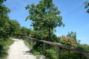 La seconda variante prevede la svolta a destra al termine della salita del versante sud del Calbarina, in direzione degli stagni di Corte Borin, proseguendo verso l’area attrezzata ed in seguito sbucando in una piccola piazza recintata in prossimità di Via Mondonego; da qui si accede in un delizioso boschetto caratterizzato dalla presenza del Gelso della Cina, una pianta alloctona famosa per la varietà e bellezza delle sue foglie.