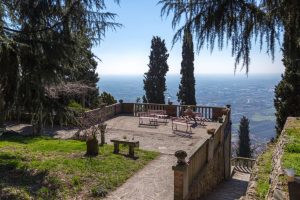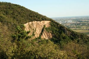La strada asfaltata che sale in direzione sud-ovest dietro alla stazione di Monselice segna l’inizio del Sentiero del Monte Ricco e del Monte Castello. Si tratta di un percorso di 5 km, senza difficoltà perché privo di grosse pendenze. Si arriva in prossimità di una casa rossa e da qui si prosegue verso ovest, per poi giungere alla suggestiva terrazza panoramica dominata dalla statua di Ercole che sorregge il mondo. Da qui potrete osservare a est la Rocca di Monselice, a ovest il profilo del campanile di Calaone, tra i monti Cero e Castello di Baone, mentre a sud la vista decisamente meno poetica di una cementeria dismessa. Sulla destra si trova una scalinata che conduce all’Eremo di Santa Domenica dei frati francescani. Da qui potrete proseguire verso sinistra in direzione di Monte Castello, o verso destra per il sentiero più breve. In entrambi i casi sarete accompagnati dall’alternarsi tra querce e castagni e macchia mediterranea a seconda dell’esposizione dei versanti.