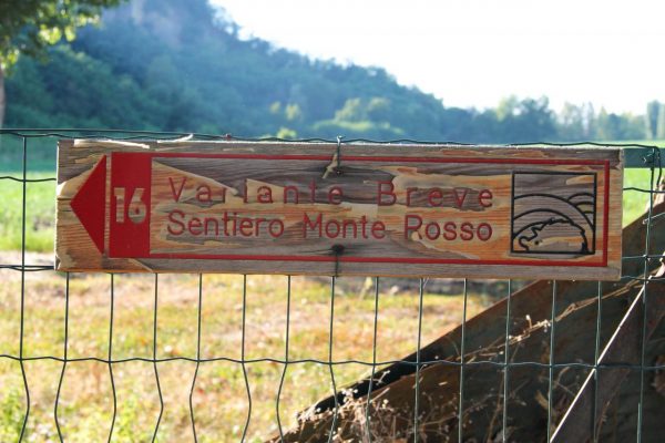 Al bivio proseguite la discesa, immersi in un bosco termofilo di leccio, orniello, roverella, bagolaro e acero campestre. In prossimità di un tornante abbandonate la pista, per proseguire lungo lo stretto sentiero che vi riporterà in via Circuito Monte Rosso.