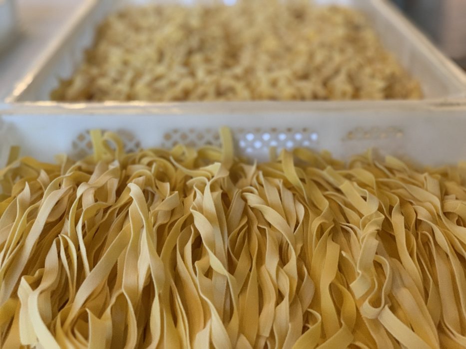 A fare gli onori di casa do sono Anna e Alba, ma a mettere la mani in pasta è il marito di Anna, e papà di Alba, Ivan Sinigaglia. Qui al Portego la pasta si fa in casa, rigorosamente con le uova fresche e la farina “mica con i preparati nei cartoni come fanno in tanti”, tuona Anna. I piatti forti, oltre ai bigoli, sono le lasagne, le pappardelle e i garganelli, condimenti? Rigorosamente il ragù d’anatra, e anche quello si prepara per tempo e con cura. La scarpetta è ammessa, anzi è quasi obbligatoria con il pane fatto in casa dalla famiglia Sinigaglia.