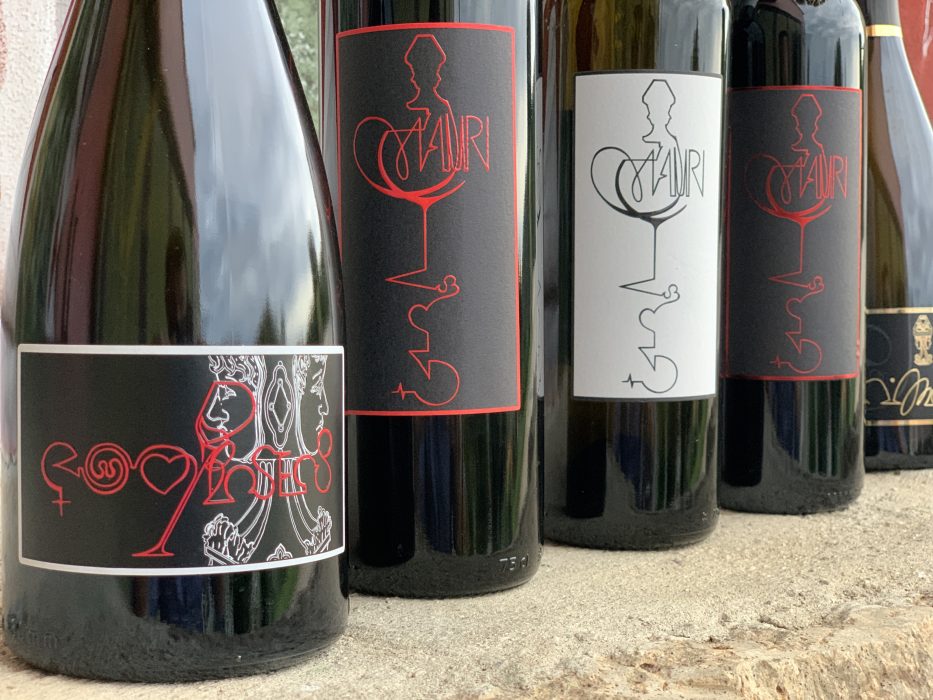 A “La Rocca di Martini Mattia” nessun talento è andato sprecato. Giorgio e Mattia, con mamma Carla, si prendono cura della terra, delle vigne e degli olivi che soni la tradizione di famiglia. Laura invece, che ha la passione per il disegno, pensa alle etichette. Disegni astratti, fatti di simboli e rimandi, segni netti che tracciano la storia della famiglia. “Le etichette devono essere strane, devono incuriosire, così la gente prende in mano la bottiglia per guardarle” dice Laura che studia a Bologna ma che ha trovato il suo modo per partecipare alla vita nei campi della famiglia. La Rocca di Martini Mattia produce all’anno circa 6000 bottiglie di Prosecco, Mauri Rosso (Cabernet e Merlot), Mauri Bianco, Chardonnay e rosso barricato.